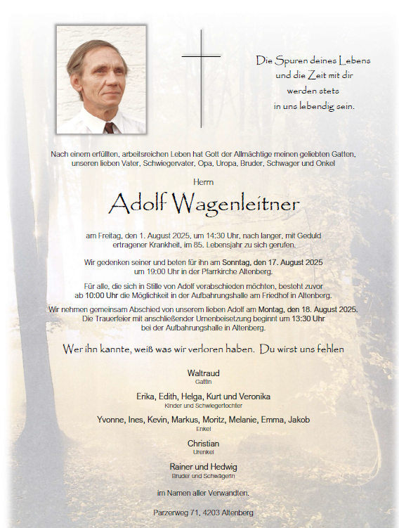 Am 1. August 2025 verstarb unser langjähriges Mitglied Adi Wagenleitner.